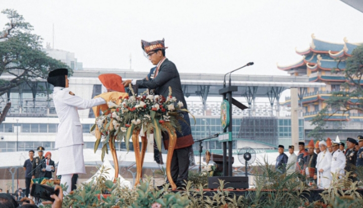 Wali Kota Medan, Rico Tri Putra Bayu Waas, bertindak sebagai inspektur upacara dengan mengenakan pakaian adat Toba. Upacara diikuti oleh segenap unsur Forkopimda, Wakil Wali Kota H. Zakiyuddin, tokoh masyarakat, Ketua TP PKK Airin Rico Waas, Sekda Wiriya Alrahman, pimpinan perangkat daerah, serta ribuan warga yang memadati kawasan titik nol Kota Medan tersebut.