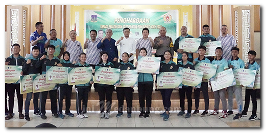 Pemberian penghargaan ini dilakukan di Gedung Hj Sawiyah Jalan Sutomo, Jumat (26/7/2024) dan dihadiri Pj. Wali Kota Tebing Tinggi, Dr. Moettaqien Hasrimi, S.STP., M.Si, Pj. Ketua TP PKK Kota Tebing Tinggi Ny. dr. Dara Caprina Moetaqqien, Ketua DPRD Basyaruddin Nasution, S.H., M.H., Kasat Samapta Polres AKP. Enda Tarigan, S.H., mewakili Kapolres Tebing Tinggi, Ketua KONI Sumut Jhon Ismadi Lubis, Ketua KONI Tebing Tinggi Anton King, Kadis Kominfo Dedi Parulian Siagian, S.STP., M.Si., Sekretaris Disporapar Safwan, S.KM., Plt. Kabag Prokopim Faisal Ahmad, S.Ag., pengurus cabor serta tamu undangan.