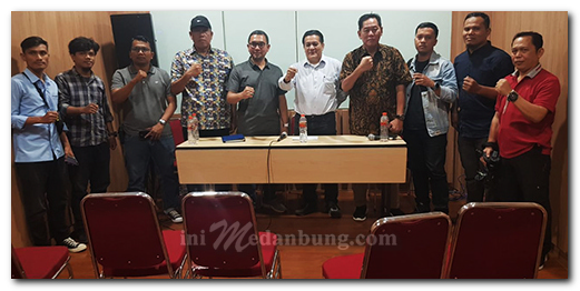 Bupati Serdang Bedagai (Sergai) H. Darma Wijaya selaku Ketua Pengurus Provinsi (Pengprov) Sumatera Utara (Sumut) Persatuan Gulat Seluruh Indonesia (PGSI) melalui Sekretaris, H Ikhsan, AP, M.Si menghadiri Konferensi Pers bersama Pengurus Pusat Persatuan Gulat Seluruh Indonesia (PP PGSI) di Alam Hotel, Medan, Sabtu, (19/11/2022).