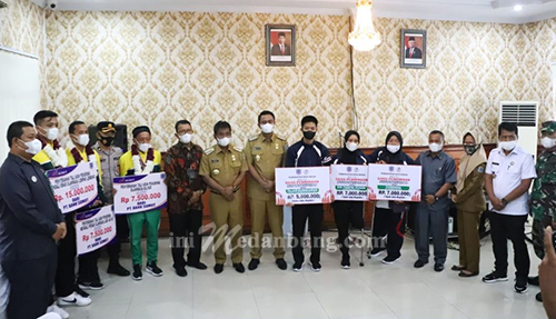 Selain itu juga ada pemberian tali asih oleh Wali Kota Binjai dan PT Bank Sumut kepada atlet pemenang PON XX Papua tahun 2021 yang mendapat medali yang menjadi perwakilan dari 16 atlit yaitu Peraih mendali emas lempar lembing Abdul Hafidz mendapat tali asih dari PT Bank Sumut Rp 15.000.000, Peraih mendali lari gawang 409 meter M Kahairudin Syahputra mendapat tali asih dari PT Bank Sumut Rp 7.500.000, Peraih mendali perak dan perunggu Cabang olahraga biliar Jaka Kurniawan mendapat tali asih dari PT Bank Sumut Rp 7.500.000 dan atlit NPC yang akan berangkat bertanding pada Peparnas XVl Papua dan Bahrain tahun 2021 masing-masing mendapat uang pembinaan Rp 7000.000. ***