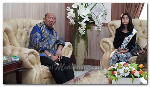 Plt Bupati Langkat H.Syah Afandin SH menerima kedatangan Haga Natasyah Ndraha (17) finalis Putri Kebudayaan Nusantara, bertempat rumah dinas Bupati Langkat, Kamis 7 September 2023.