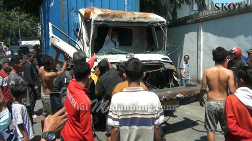 Akibat kejadian tersebut, sang supir truk BK 8818 LC atas nama Budiman mengalami kaki patah lantaran terjepit badan truk.