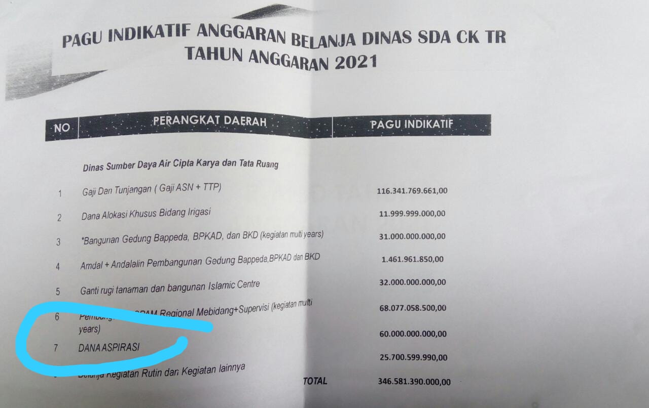 Setelah mengesahkan Anggaran Pendapatan Belanja Daerah (APBD) provinsi Sumatera Utara Tahun Anggaran 2021 bersama Gubernur pada hari Jumat, 27/11/2020, lembaga DPRD Sumut saat ini menjadi perhatian publik akibat terungkapnya DANA ASPIRASI sebesar 60 Milyar Rupiah pada Dinas Sumber Daya Air Cipta Karya dan Tata Ruang (SDACKTR).