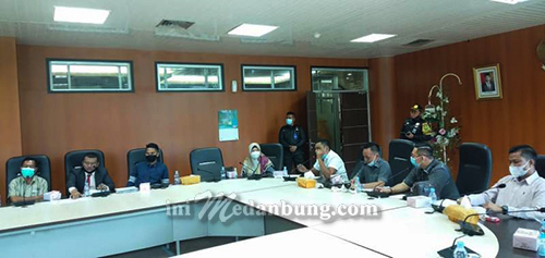 Dalam RDP dengan Komisi II DPRD Medan,selain dihadiri kedua belah pihak,juga terlihat pihak Disnaker Kota Medan,BPJS dan bidang pengawasan.
