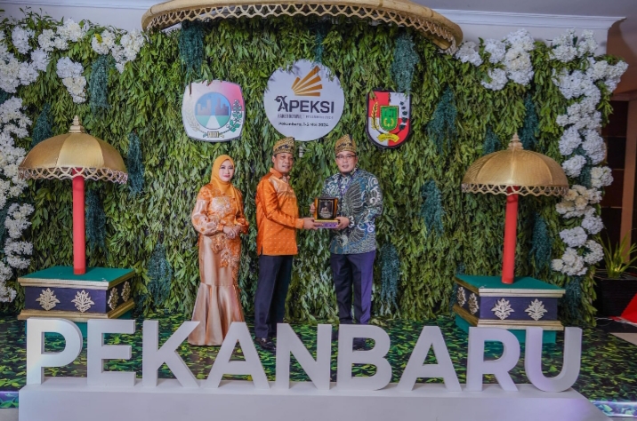 Kedatangan Wali Kota Medan Bobby Nasution diwakili Wakil Wali Kota H. Aulia Rachman ke Jamuan Makan Malam Rapat Kerja Komisariat Wilayah (Komwil) I Apeksi, Kamis (2/5/2024) di Balairung Hotel Pangeran disambut dengan prosesi pemasangan tanjak oleh Pj Wali Kota Pekanbaru, Muflihun.