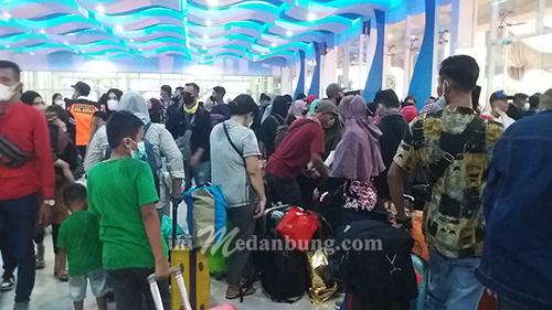 Terminal Penumpang Bandar Deli Pelabuhan Belawan pada Sabtu sore (01/05/2022) dipadati pemudik sebanyakn2600 orang dewasa dan anak anak.