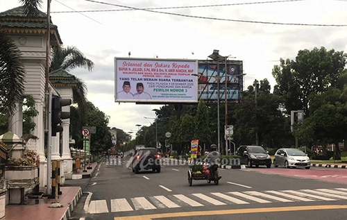 Bahkan ada juga ucapan selamat atas perolehan suara terbanyak pasangan nomor urut 3 itu dipasang di billboard besar di jalan protokol Sudirman inti kota Binjai.