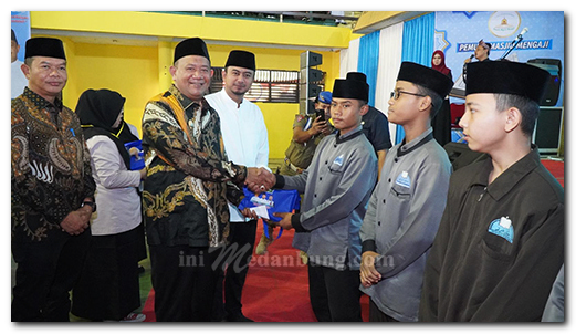 Dalam kesempatan ini Plt Bupati Langkat menyerahkan wakaf 100 AL Qur’an dan menyerahkan tali asih kepada 100 orang penghafal AL Qur’an (Hafizh) di kabupaten langkat.