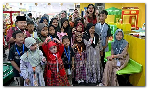 Ketua TP PKK Sumut Kahiyang Ayu mentraktir berbelanja dan bermain bersama anak yatim di salah satu pusat perbelanjaan di Jalan Sisingamangaraja, Medan, Jum’at (25/7/2025). (Foto : Dinas Komunikasi dan Informatika Provinsi Sumut / Imam Syahputra).