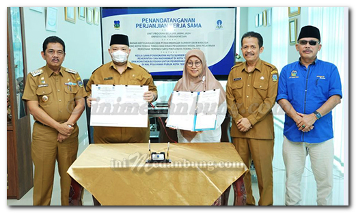 Penandatanganan kerjasama Universitas Terbuka Medan dengan dua lembaga Pemerintah Kota Tebing Tinggi ini juga dihadiri Plt. Sekda Kota Tebing Tinggi Bambang Sudaryono dan Kabag Pemerintahan Pemko Tebing Tinggi Ramadhan Barqah Pulungan. ***