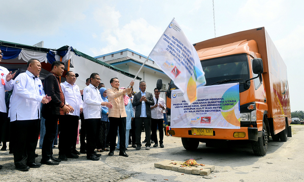 Penjabat (Pj) Gubernur Sumatera Utara (Sumut) Agus Fatoni melakukan pelepasan ekspor perdana kerupuk kulit ikan patin sebanyak 2.500 kg produksi UMKM ke Malaysia. Dia berharap kegiatan ini mampu mendorong UMKM lain untuk memanfaatkan peluang ekspor di pasar global yang besar.